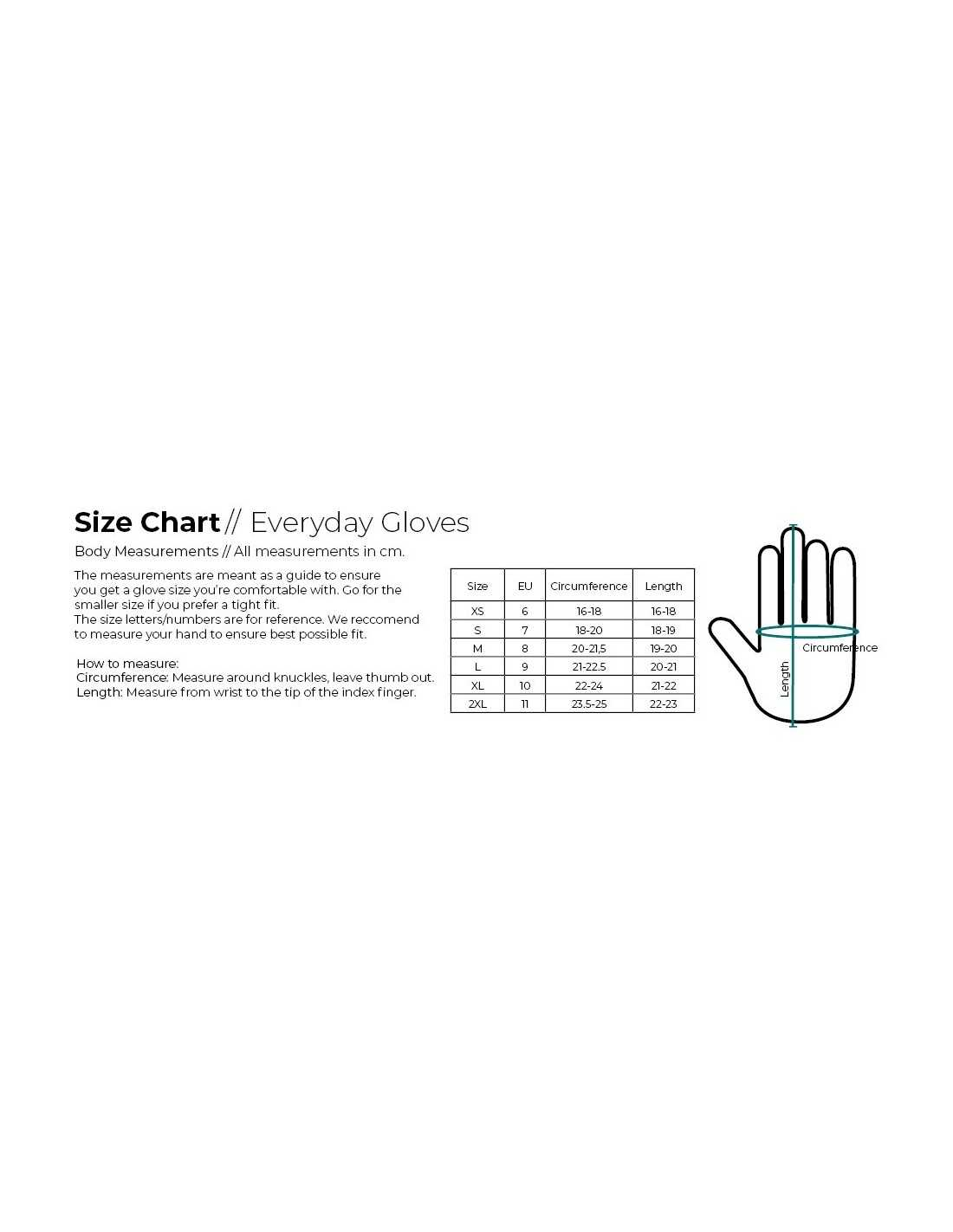 Specifikationer på handskerne: