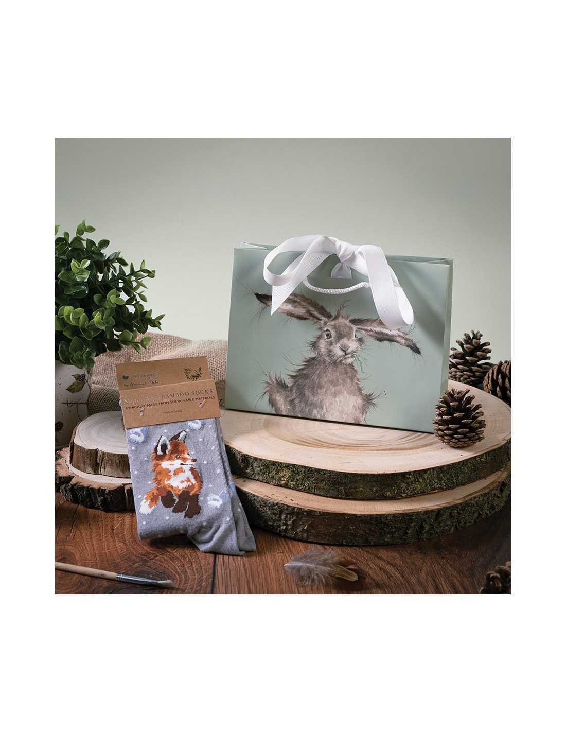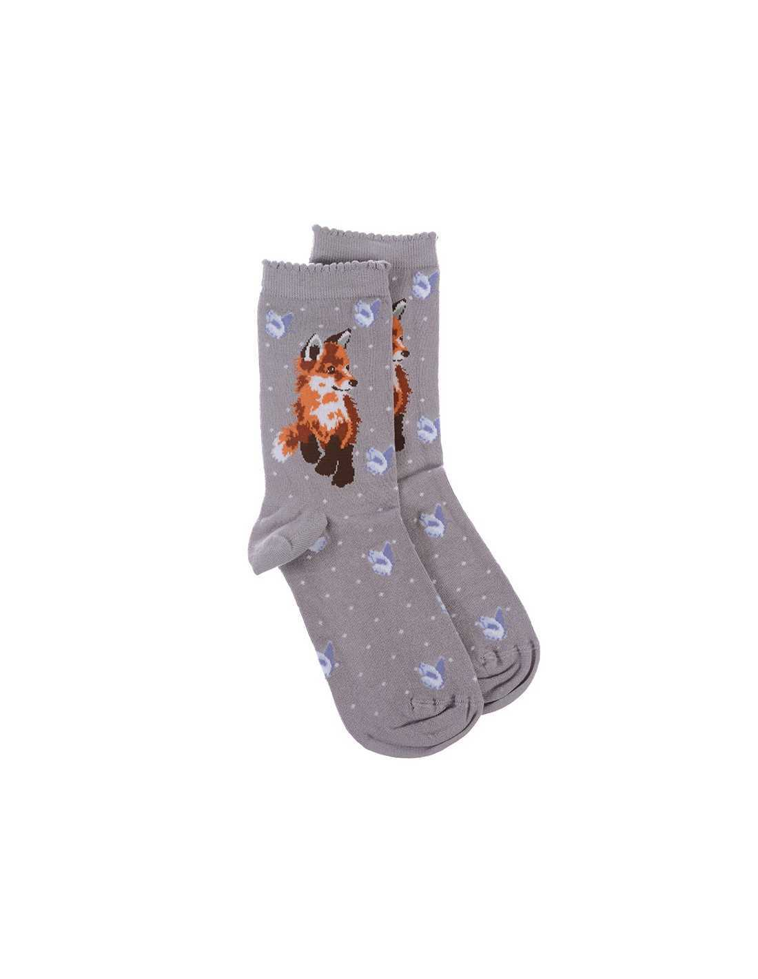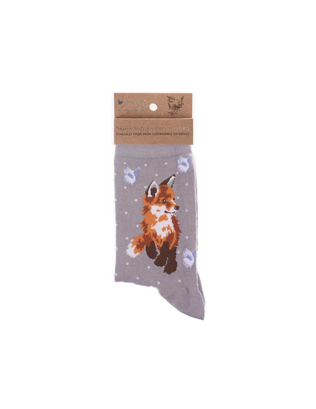 Wrendale bambus sokker grå med Ræv - Dame/Børn