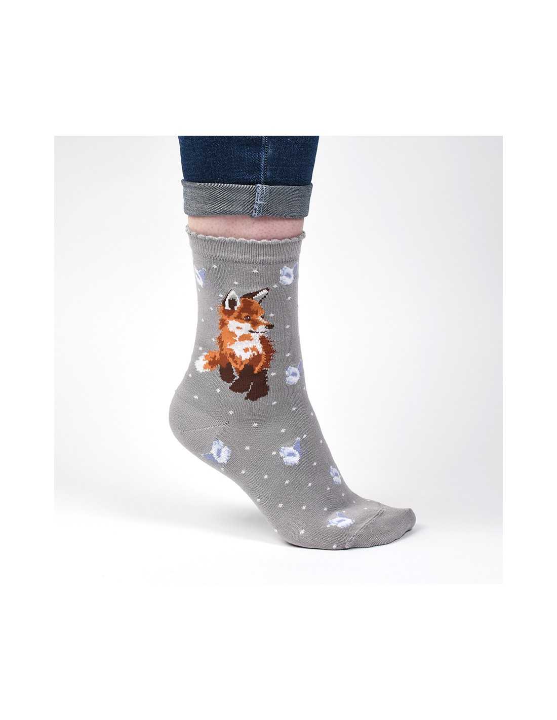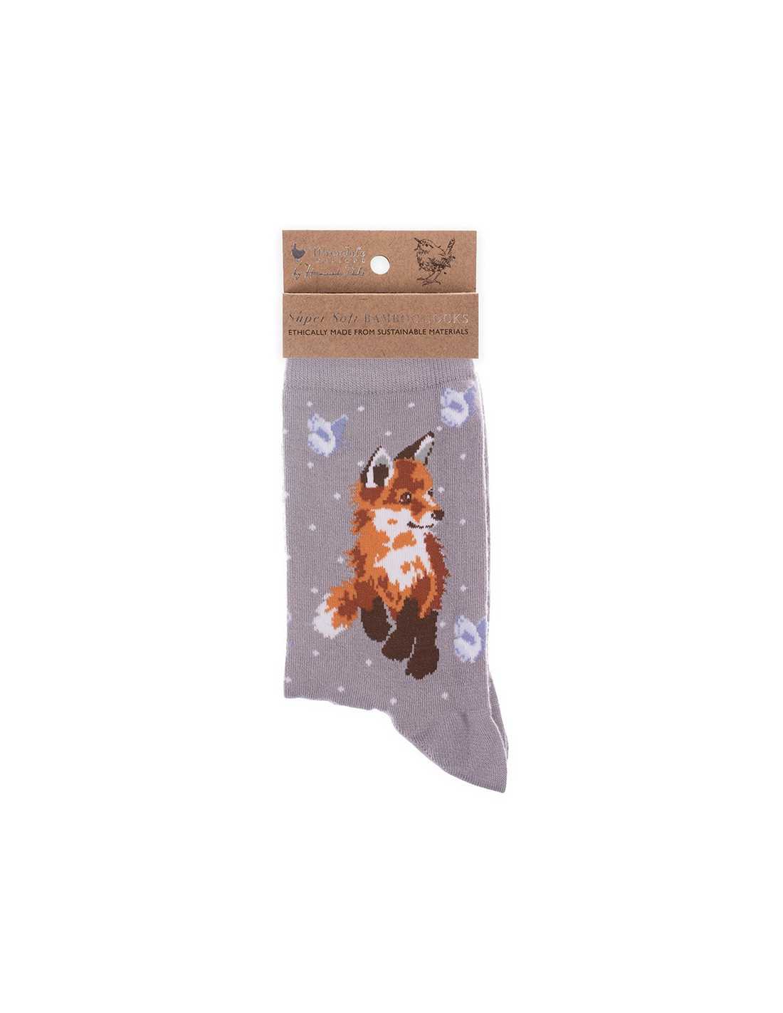 Wrendale Wrendale bambus sokker grå med Ræv - Dame/Børn