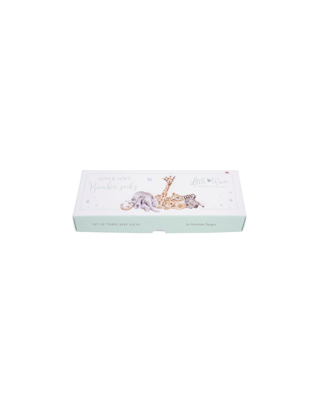 Hold de små tæer varme med disse dejlig bløde babysokker i bambus. Hvert sæt indeholder tre forskellige dyremotiver, alle med Little Wren-logoet strikket ind i fodsålen. Sokkerne kommer i en fin lille gaveæske og er den perfekte gave til en nyfødt. Brug dem som barselsgave eller til dåbsgave.