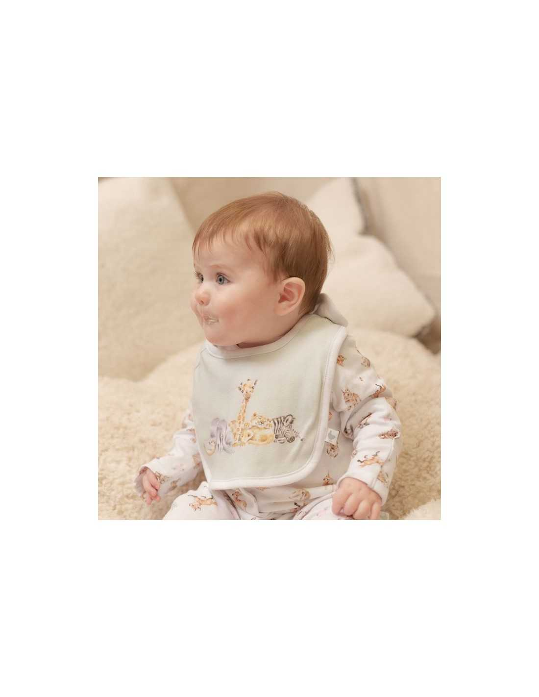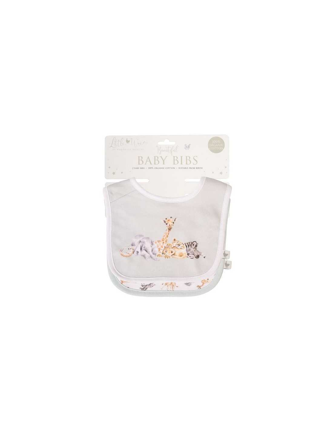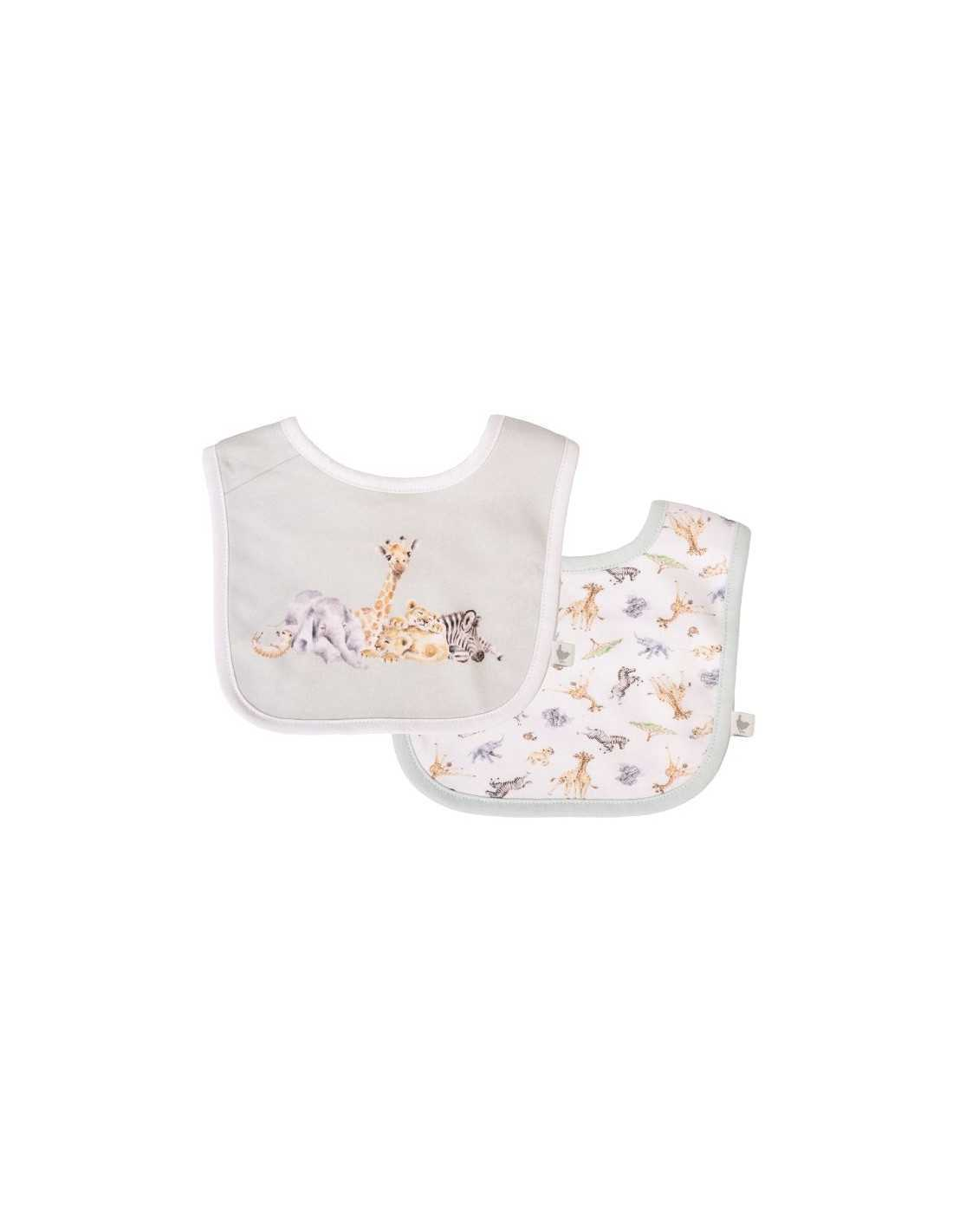 Dette søde gavesæt med hagesmække indeholder to hagesmække lavet af 100% økologisk bomuld med vores dejlige "Little Savannah" design. Den ene hagesmæk har et tryk på en lysegrøn baggrund, mens den anden har mønster over hele overfladen på en hvid baggrund med lyserød kant. Begge hagesmække er med trykknaplukning.