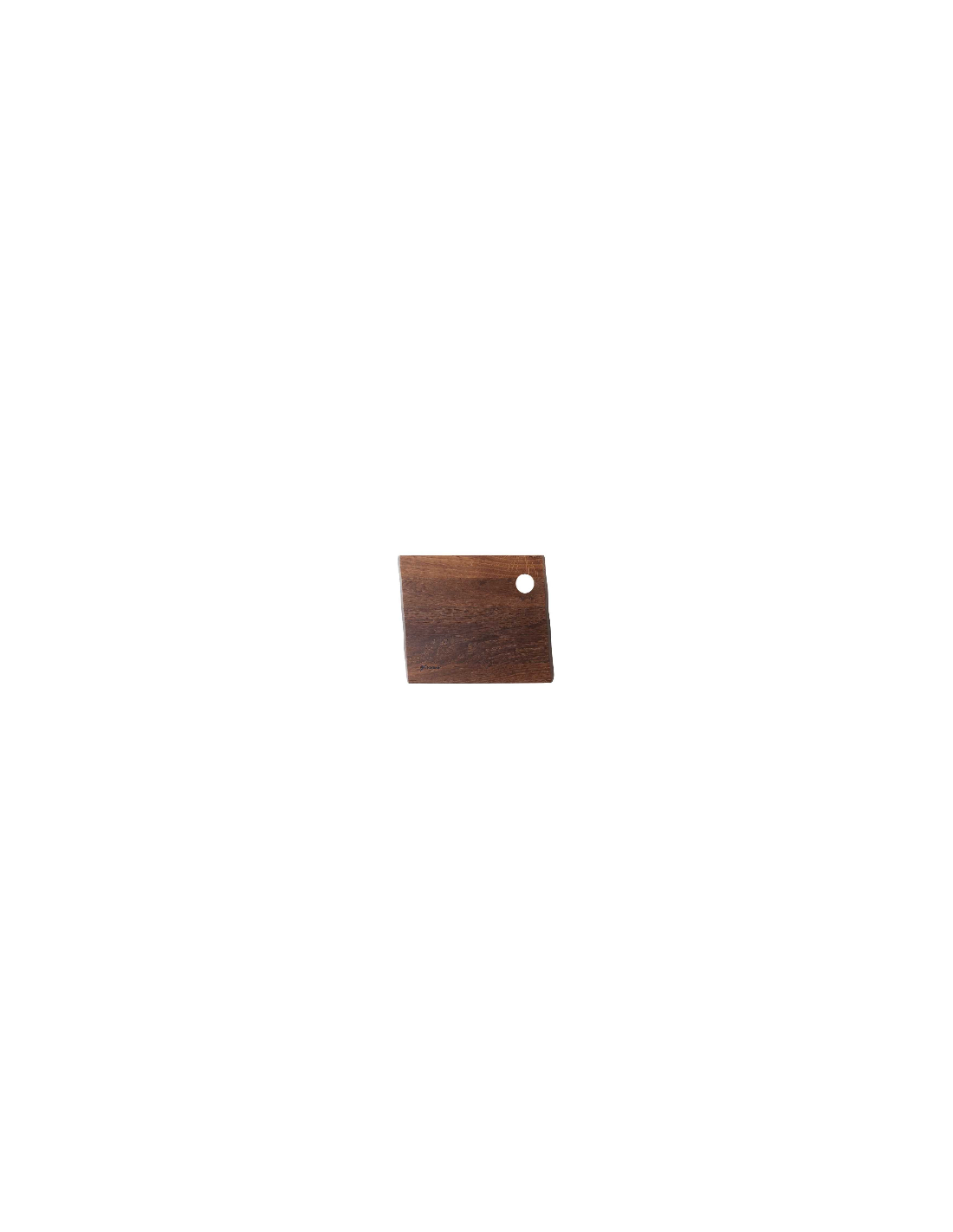 Brættet er rustikt og det gennemgående hul i brættes ene hjørne, har mange anvendelsesmuligheder. Hæng det op i dit køkken med en lædersnor eller brug den under serveringen, til f.eks. et æg. Med brættets næsten kvadratiske form, egner det sig nemlig også rigtig godt som en trætallerken.